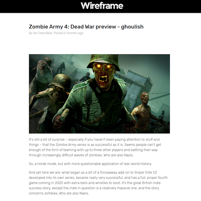 I met up with Ian Dransfield from Wireframe at Gamescom 2019 to discuss why the upcoming Zombie Army 4 game is bigger and better in every way than previous games in the franchise.
